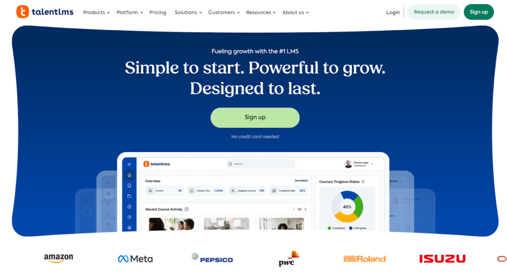 TalentLMS is built for growing companies that need to launch training without complex implementations. It supports blended learning, combining self-paced courses with instructor-led training sessions.