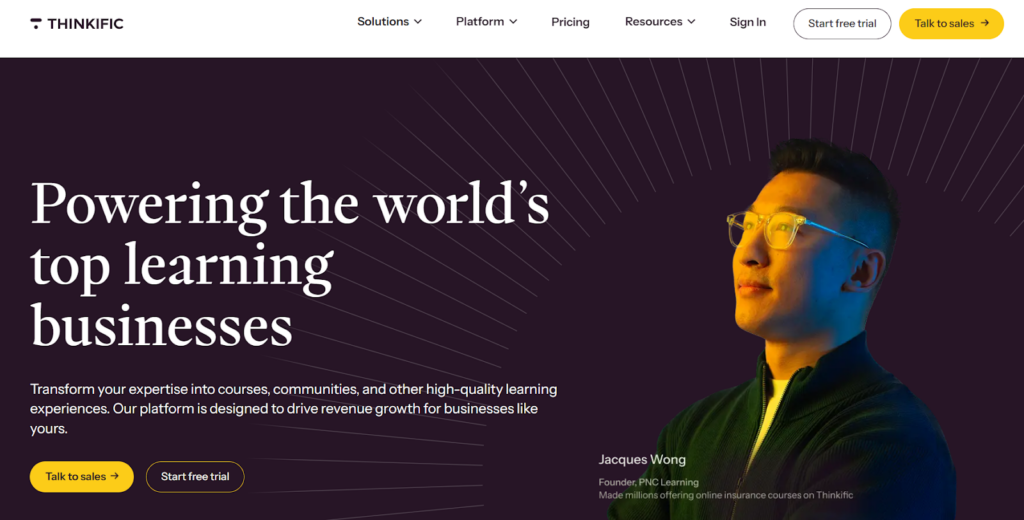 Thinkific is a multi-purpose learning commerce platform that helps organizations deliver employee training programs. It’s more flexible and creator-focused rather than built specifically for corporate L&D teams.