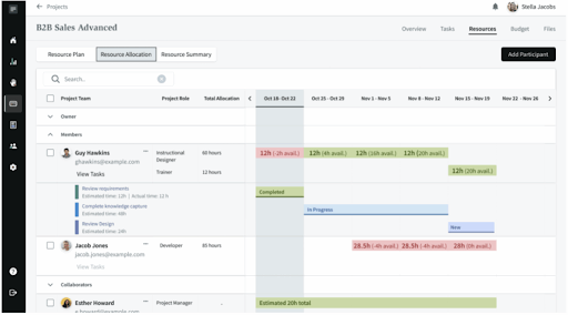 Cognota’s capacity planning gives L&D leaders a real-time view of who is working on what, how many hours are allocated versus available, and where resource conflicts will arise before they become a crisis. You can also track resources by person, role, and week for better allocation decisions.