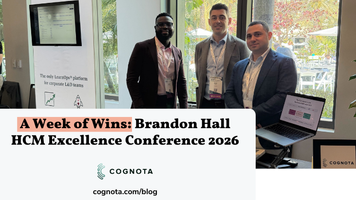 Cognota had an incredible week at the 2026 Brandon Hall Group HCM Excellence Conference and Awards—joining senior executives, industry analysts, and forward-thinking L&D leaders shaping the future of Human Capital Management. The conversations throughout the conference reflected a clear shift in the market. L&D leaders are no longer being asked simply to deliver training—they are […]